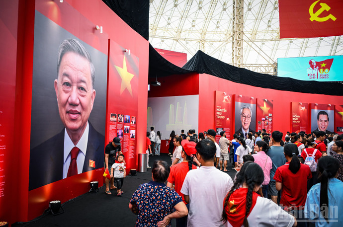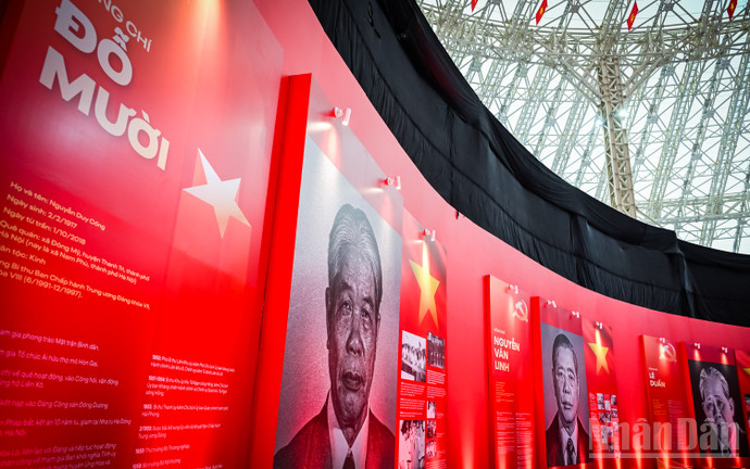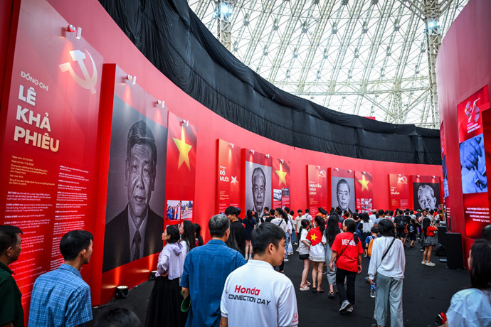 (ANTV) - Đến tham quan khu Triển lãm 95 năm Cờ Đảng soi đường (Trung tâm Triển lãm Việt Nam VEC, Hà Nội) người dân và du khách thực sự ấn tượng trước hình ảnh chân dung 13 Tổng Bí thư Đảng Cộng sản Việt Nam qua các thời kỳ được trưng bày tại triển lãm.